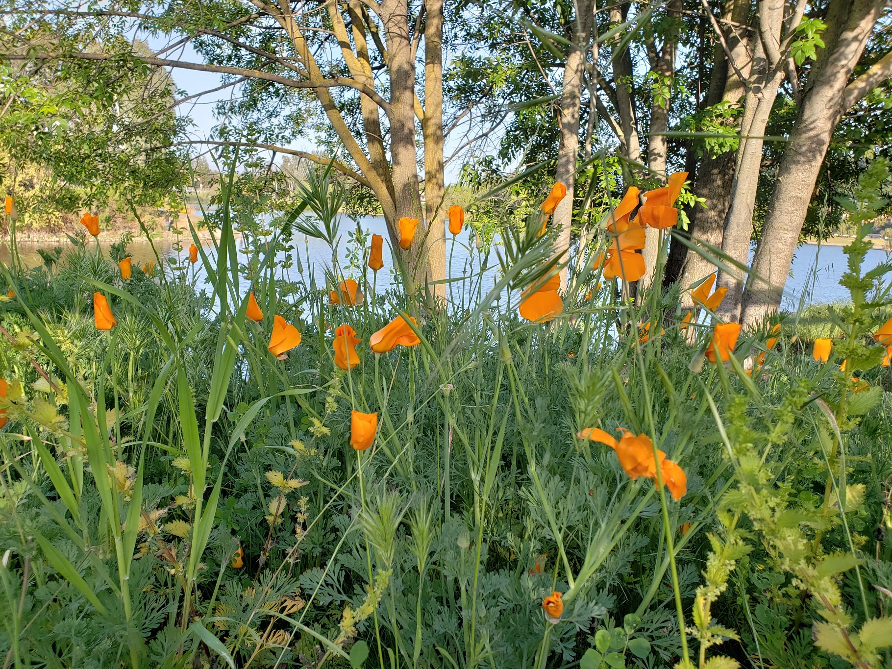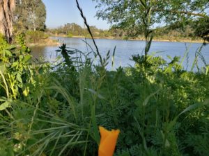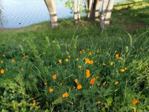 We saw lot of California Poppy on one side of lake, little black ducky happily swimming in the lake.
