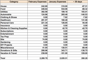In spite of being a shorter month, expenses in February rose up compared to January. The leader role this month was Food and groceries again. However, it did fall on account of shorter period. The 446$ in this category was spent mainly on Costco, SFM and ethnic food stores. The next major expense was for the utilities group. This was one of those months where we pay for the previous two months of water usage and that played a big role in the 392$ dollars spent on this group. Health care was the next major with extra spending this month for glasses for the RF family. Spending towards changing filter in the house increased house spending to 242$. Some trips for Mrs RF and shaver replacement for Mr.RF were the leaders in the rest of the categories thata brought the total spend to 2280 $.