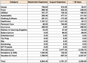 I will blame the delay of this post on recent travel and having to catch up at work. Here is the update on September expenses.